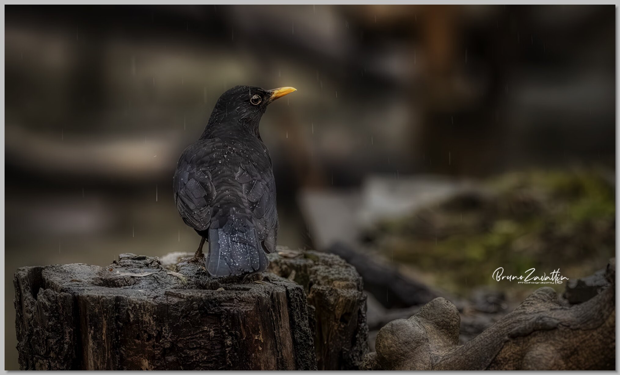 Merlo maschio pioggia